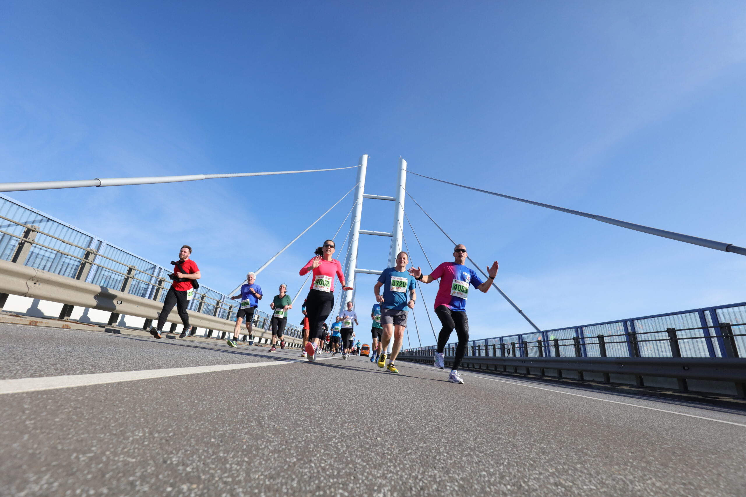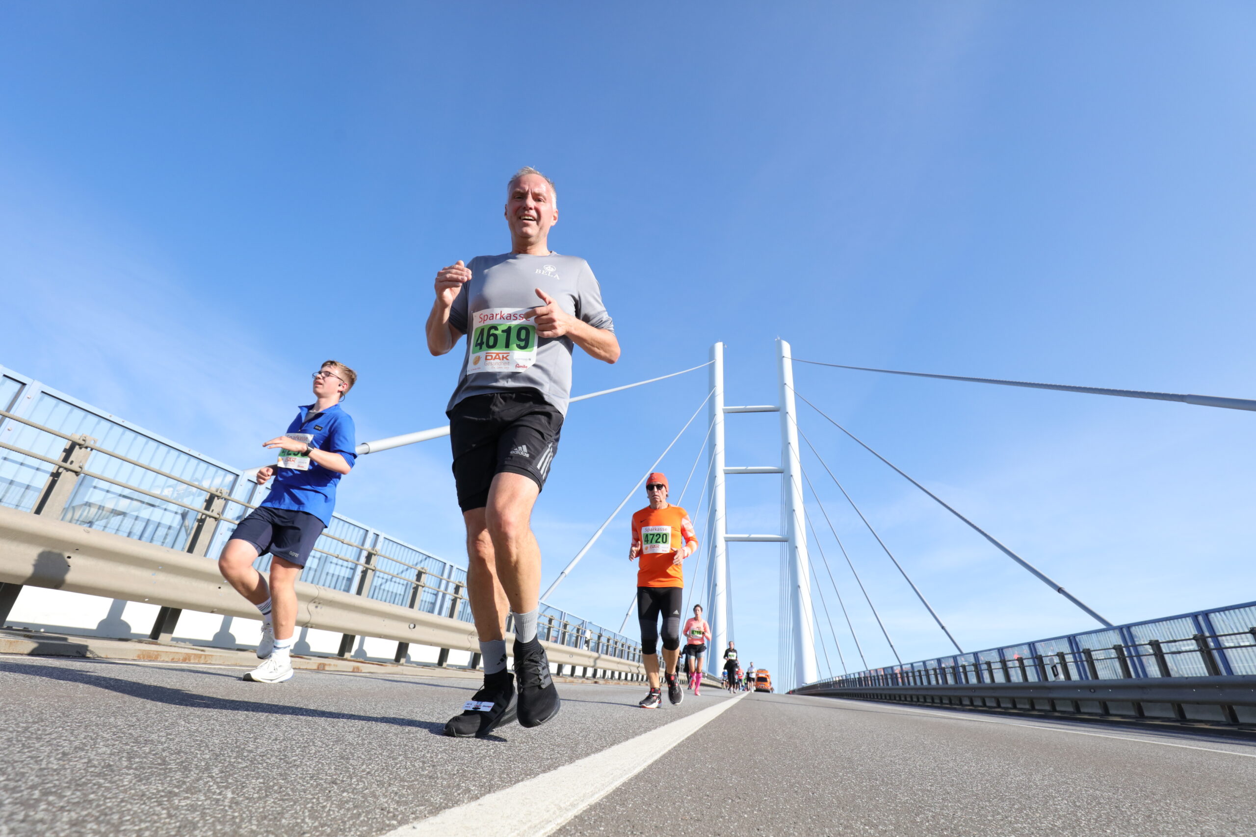Als Laufspur auf der Rügenbrücke ist jeweils die rechte Spur aus Sicht von Stralsund bzw. der Insel Rügen zu nutzen. Nordic Walking-Stöcke sind auf der Rügenbrücke nur mit Gummispitzen zugelassen.